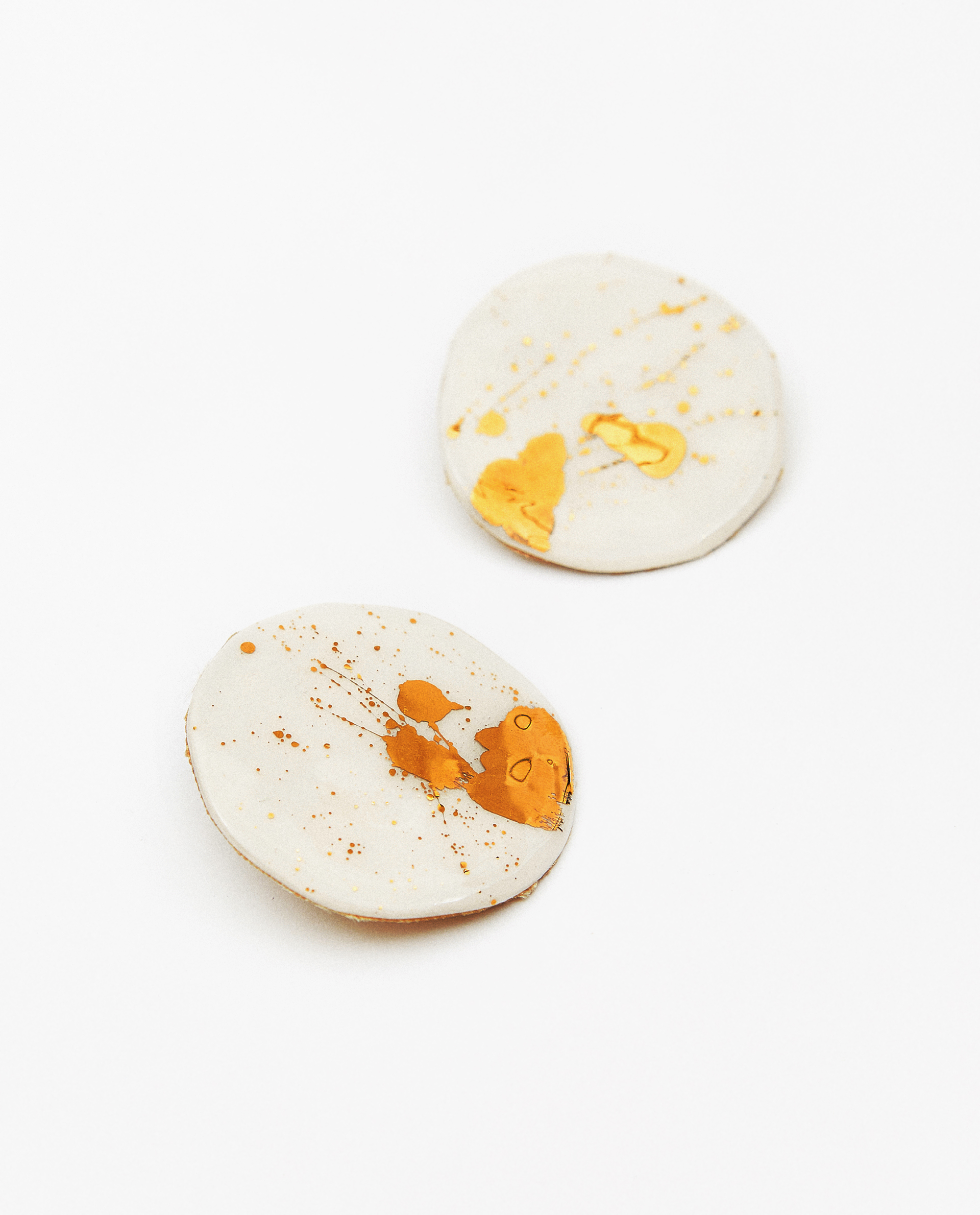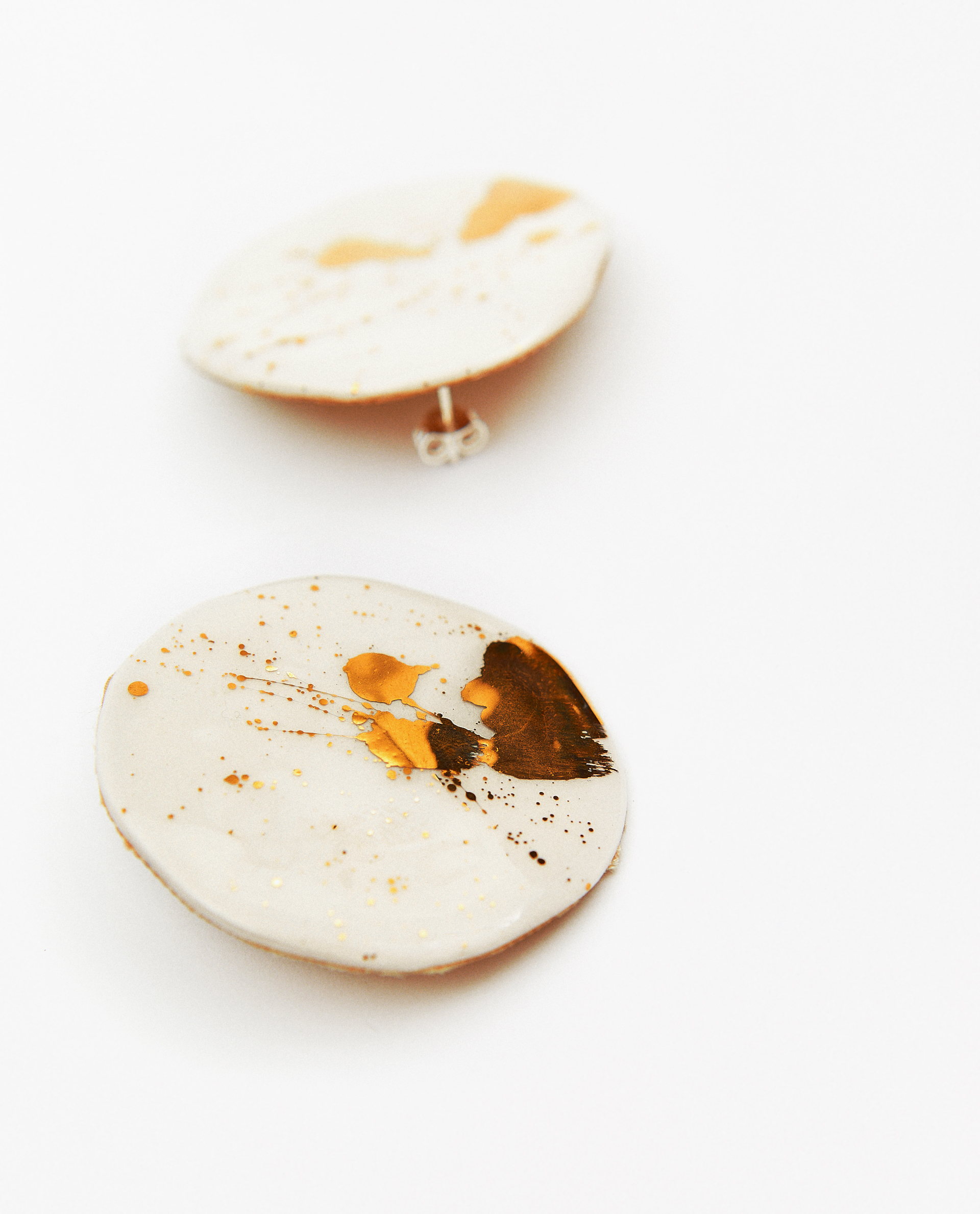 Pendientes de cerámica esmaltada en brillo y splash lustre oro. Base de plata.