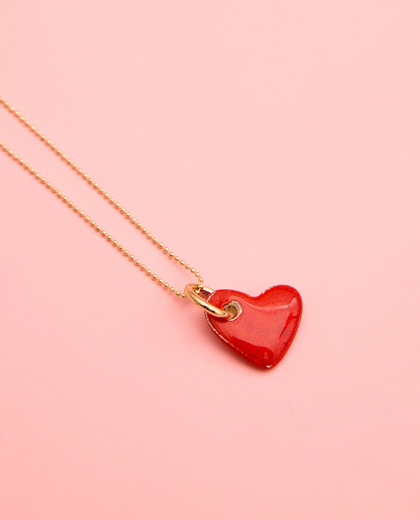 Corazón cerámica esmaltada en rojo vivo.