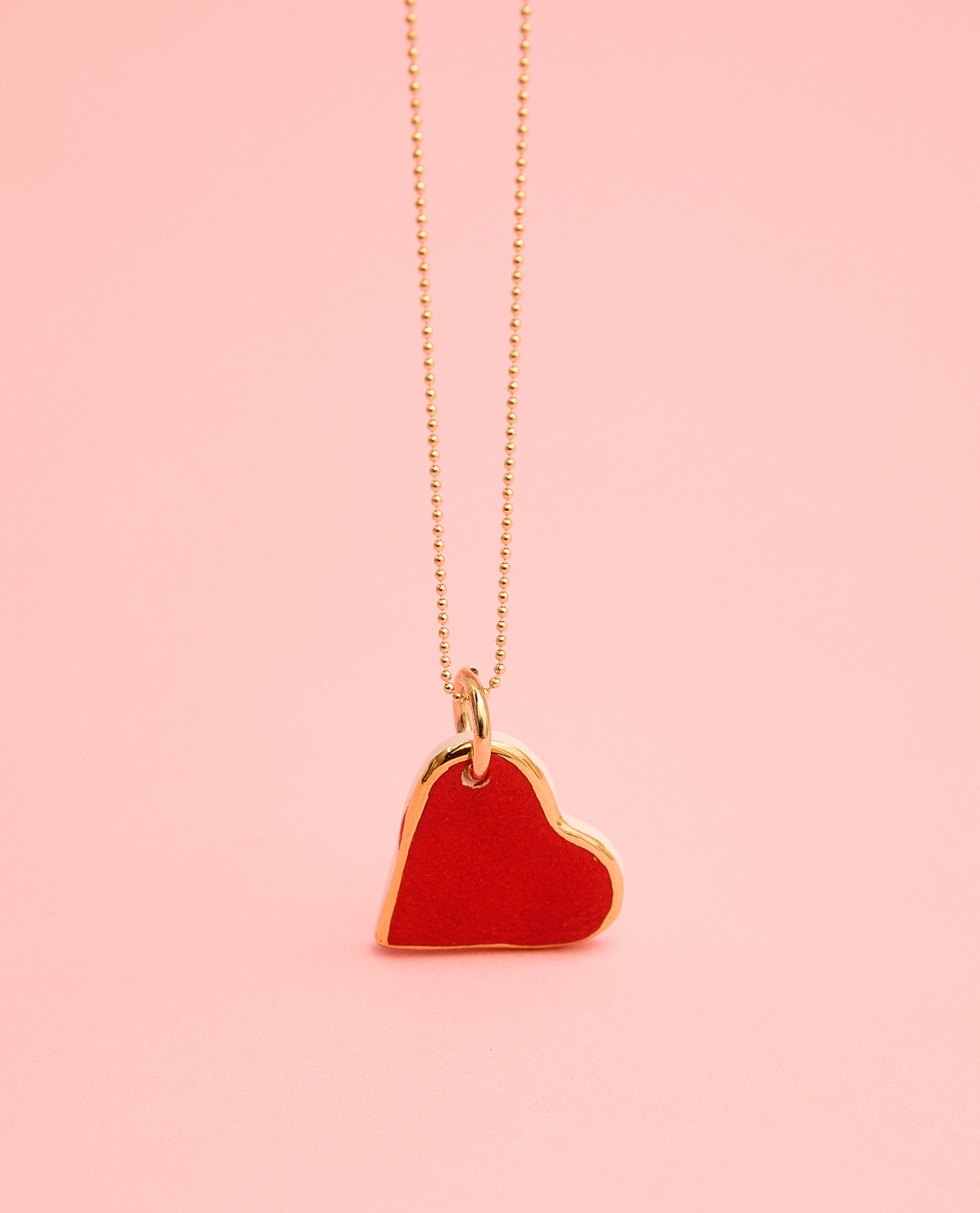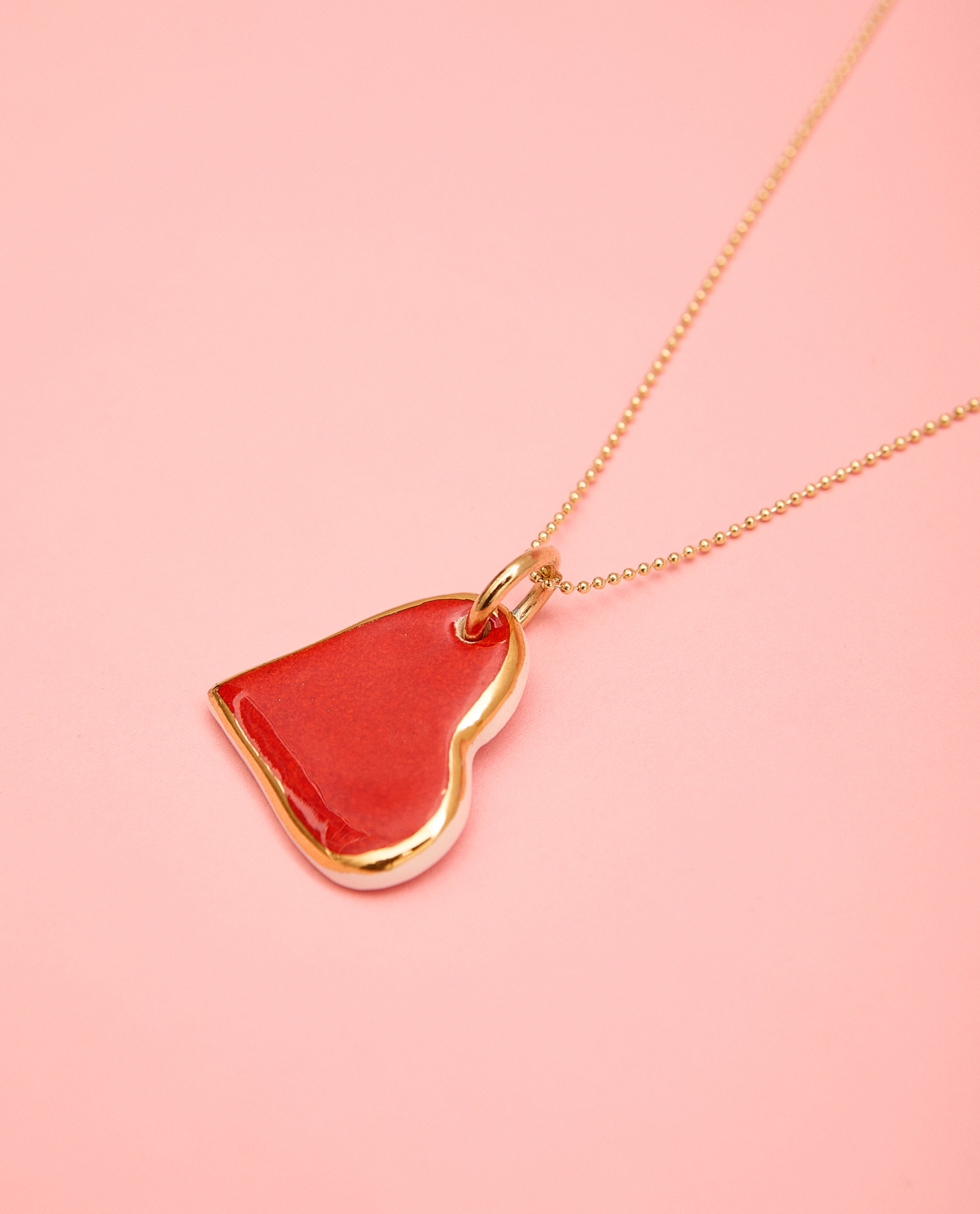 Corazón cerámica blanca esmaltado en rojo vivo perfilado en lustre de oro.