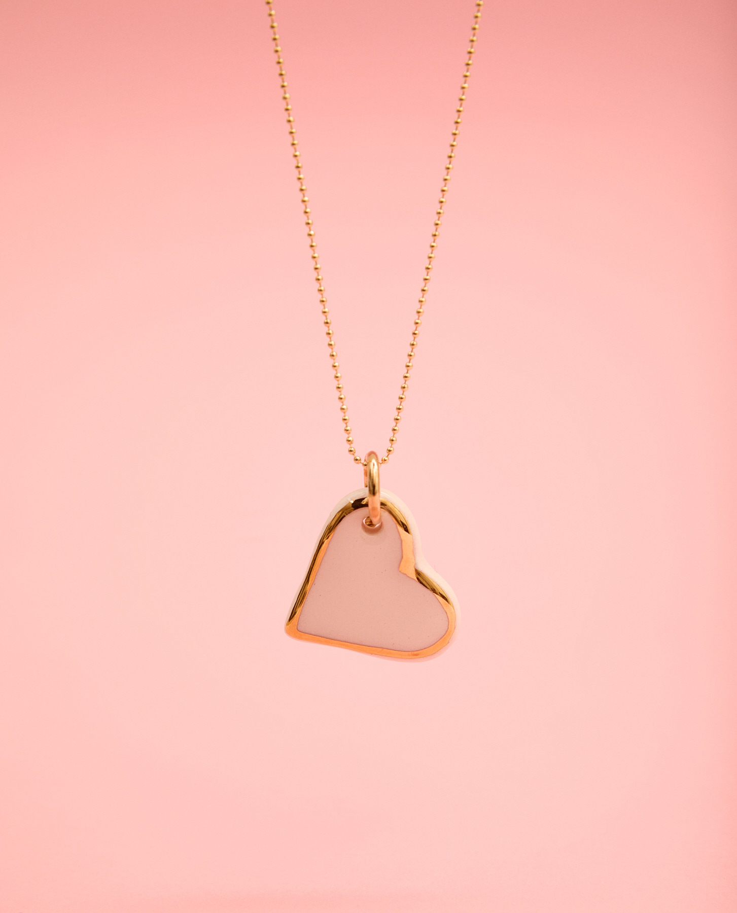 Corazón cerámica blanca esmaltada en brillo perfilado en lustre de oro.