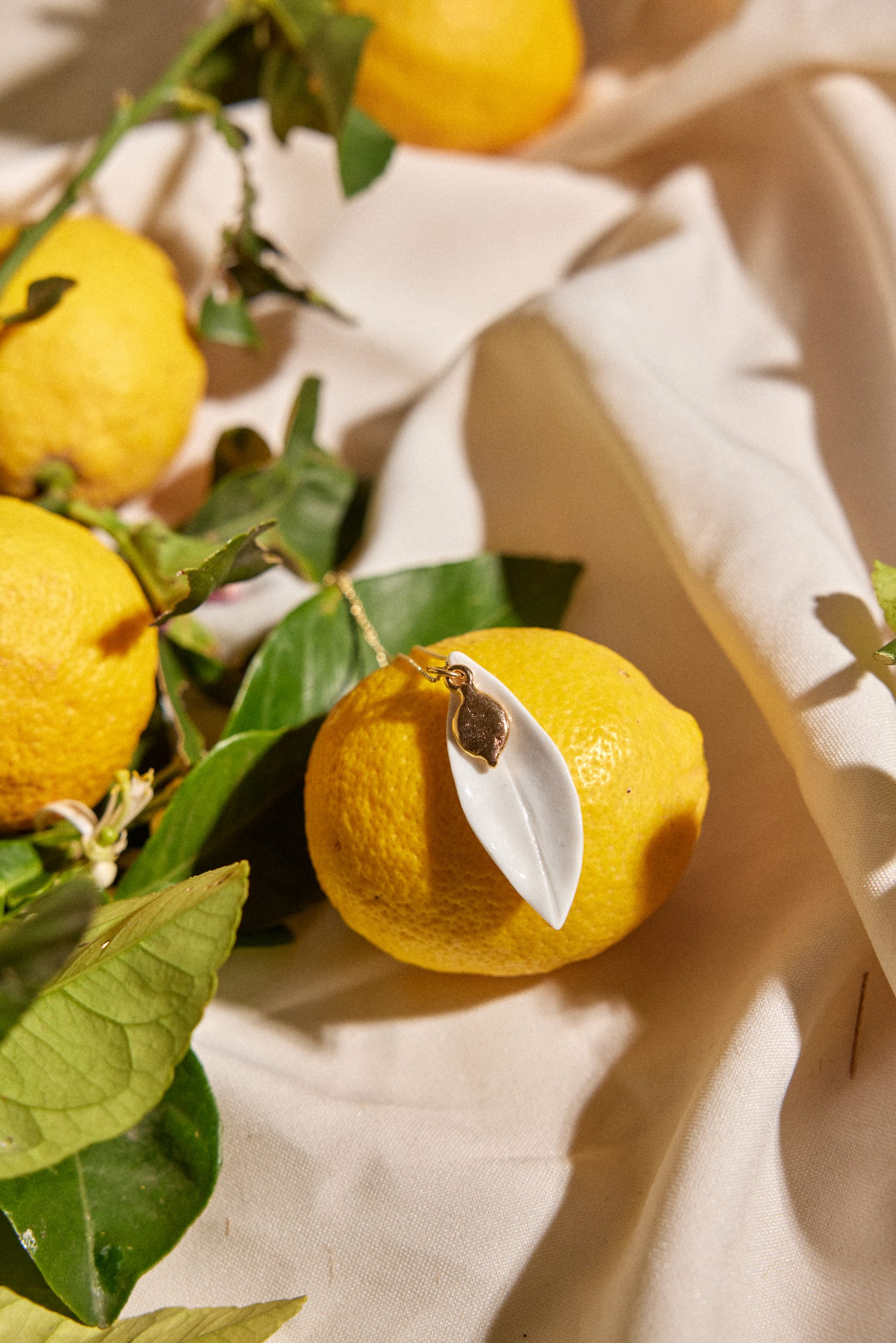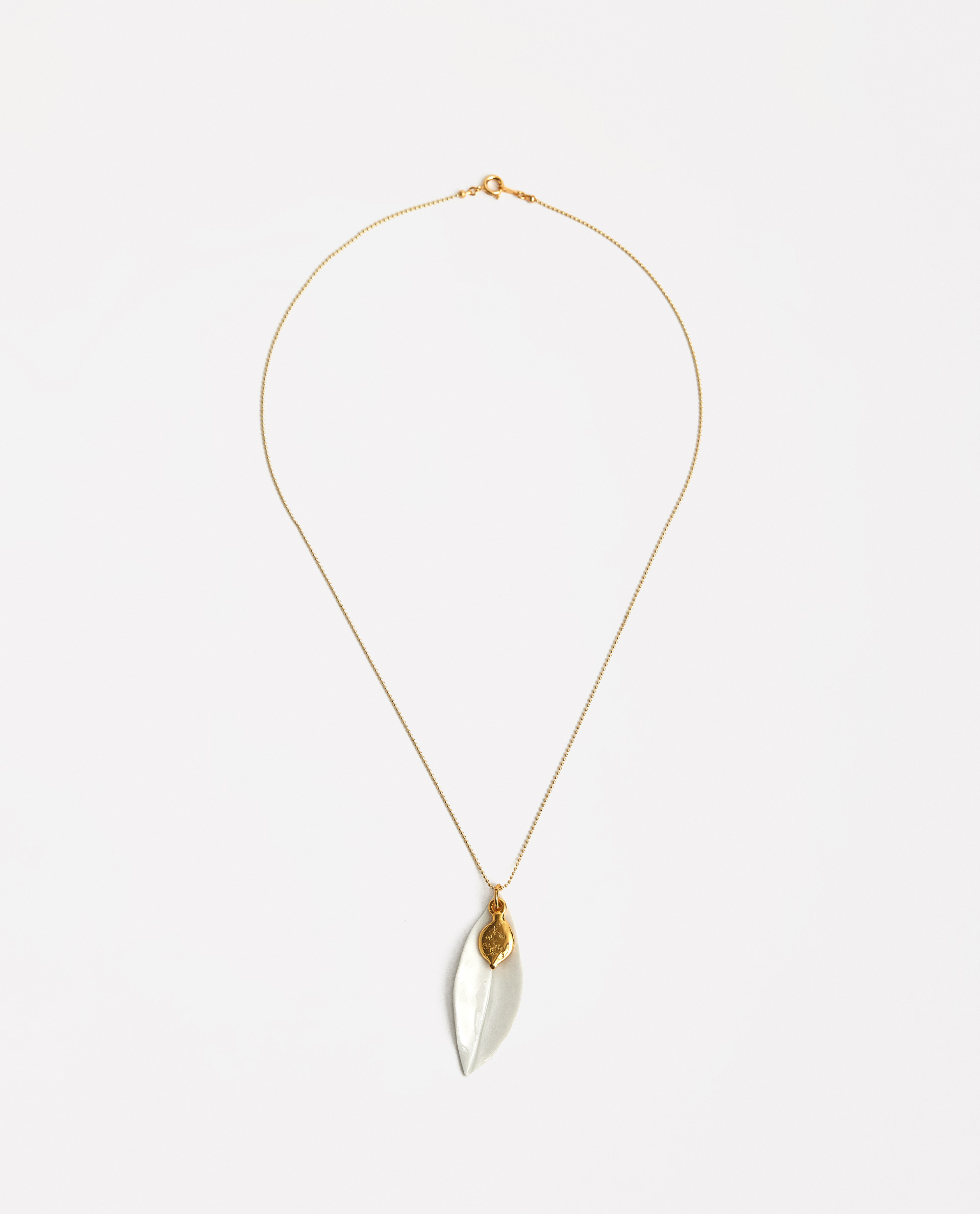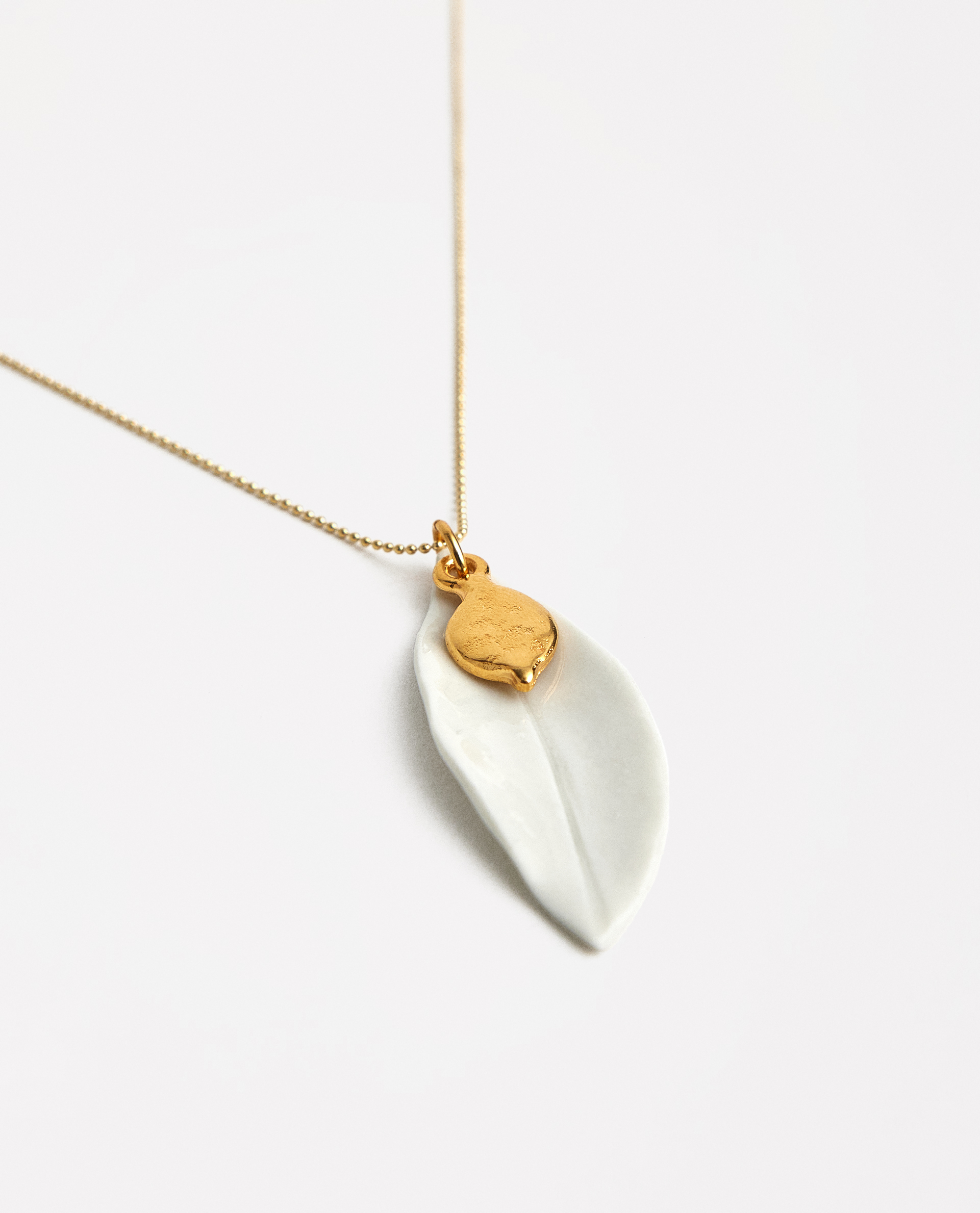 Collar forma de hoja de porcelana. Medidas aproximadas: 5cm x 2xm.