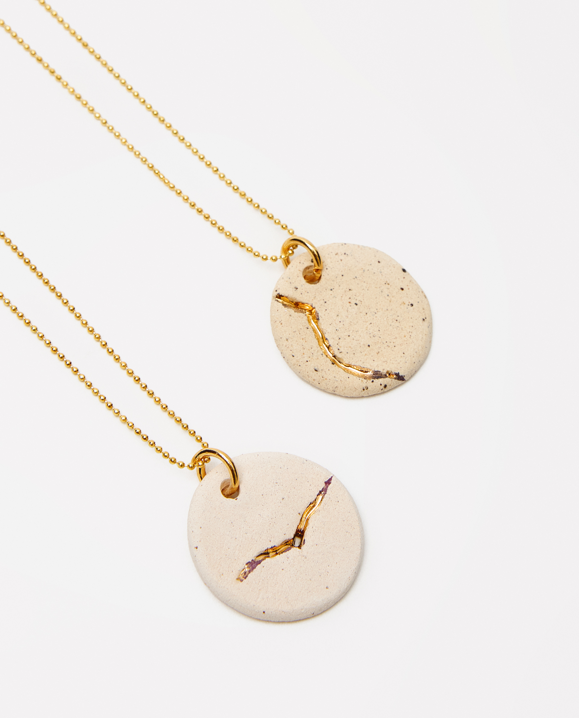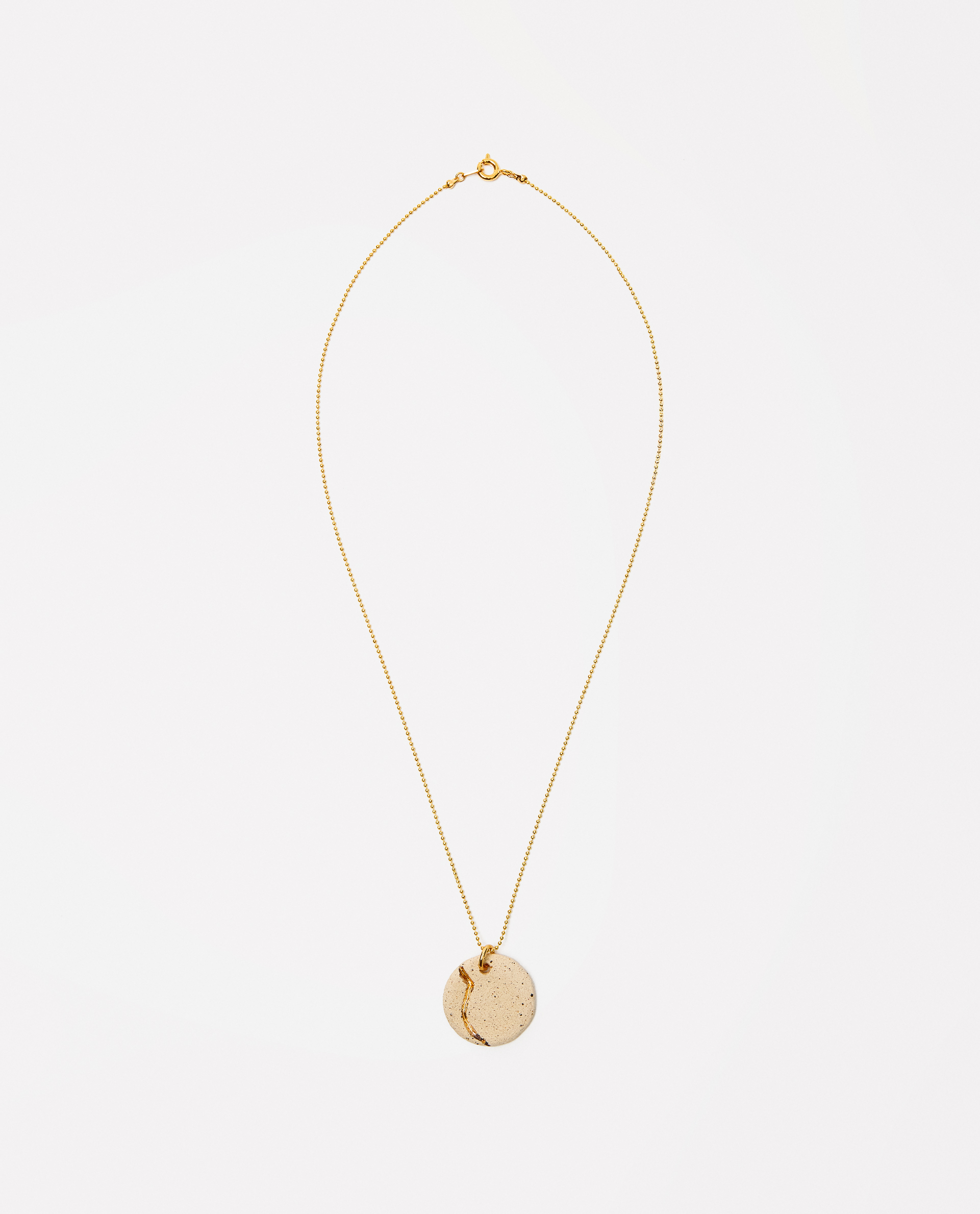 Collar realizado en gres y cocido a 1220º y 1260ºC. Lustrados en oro.