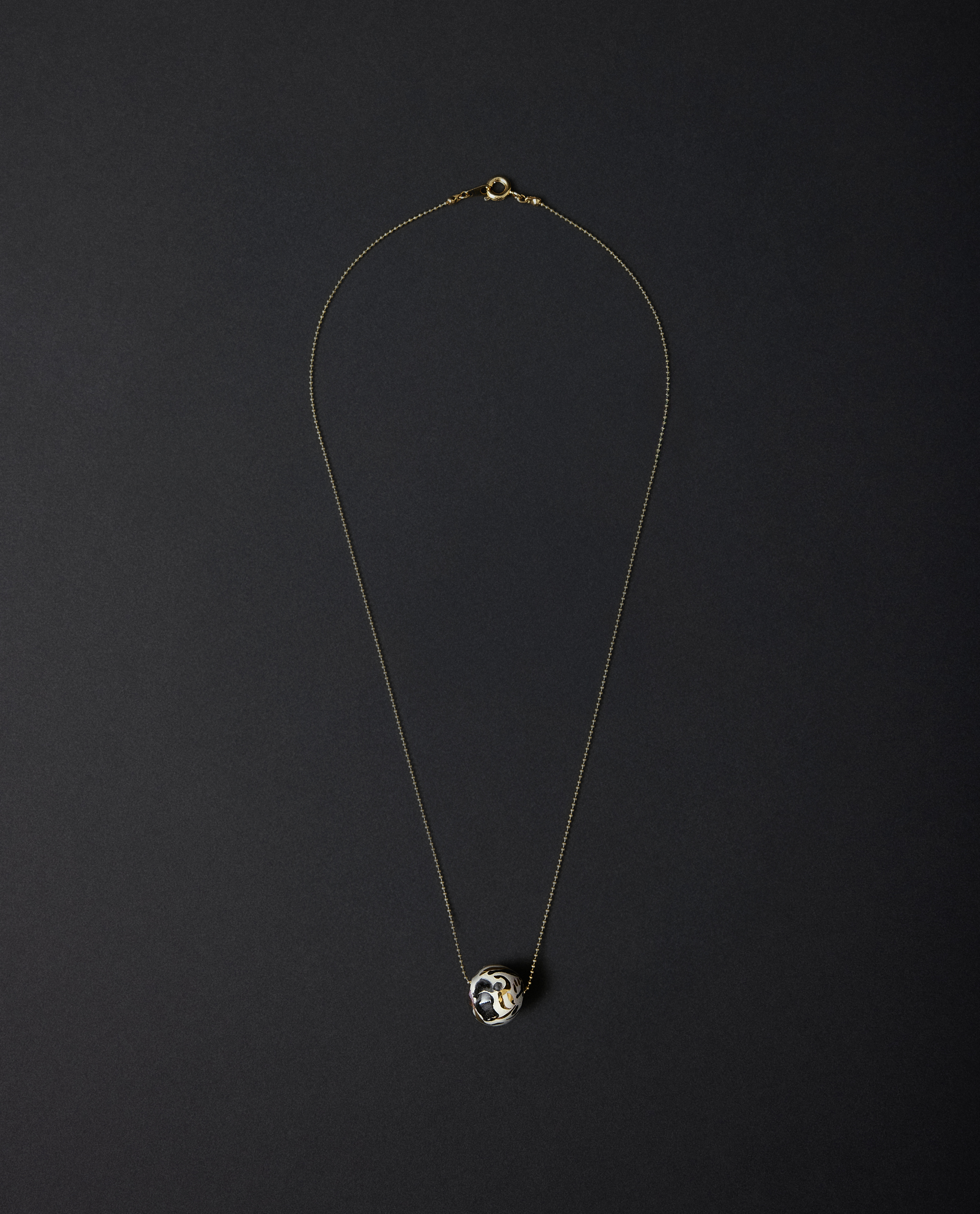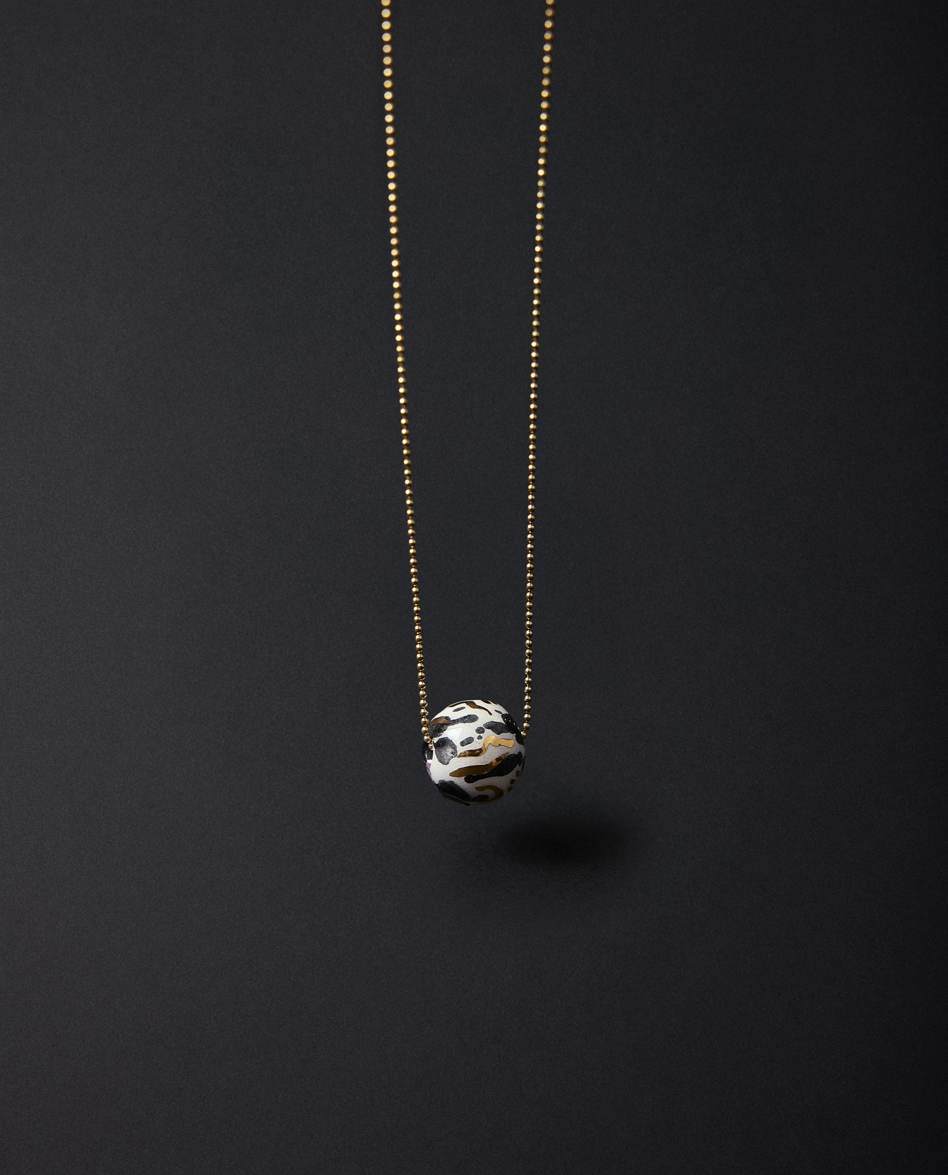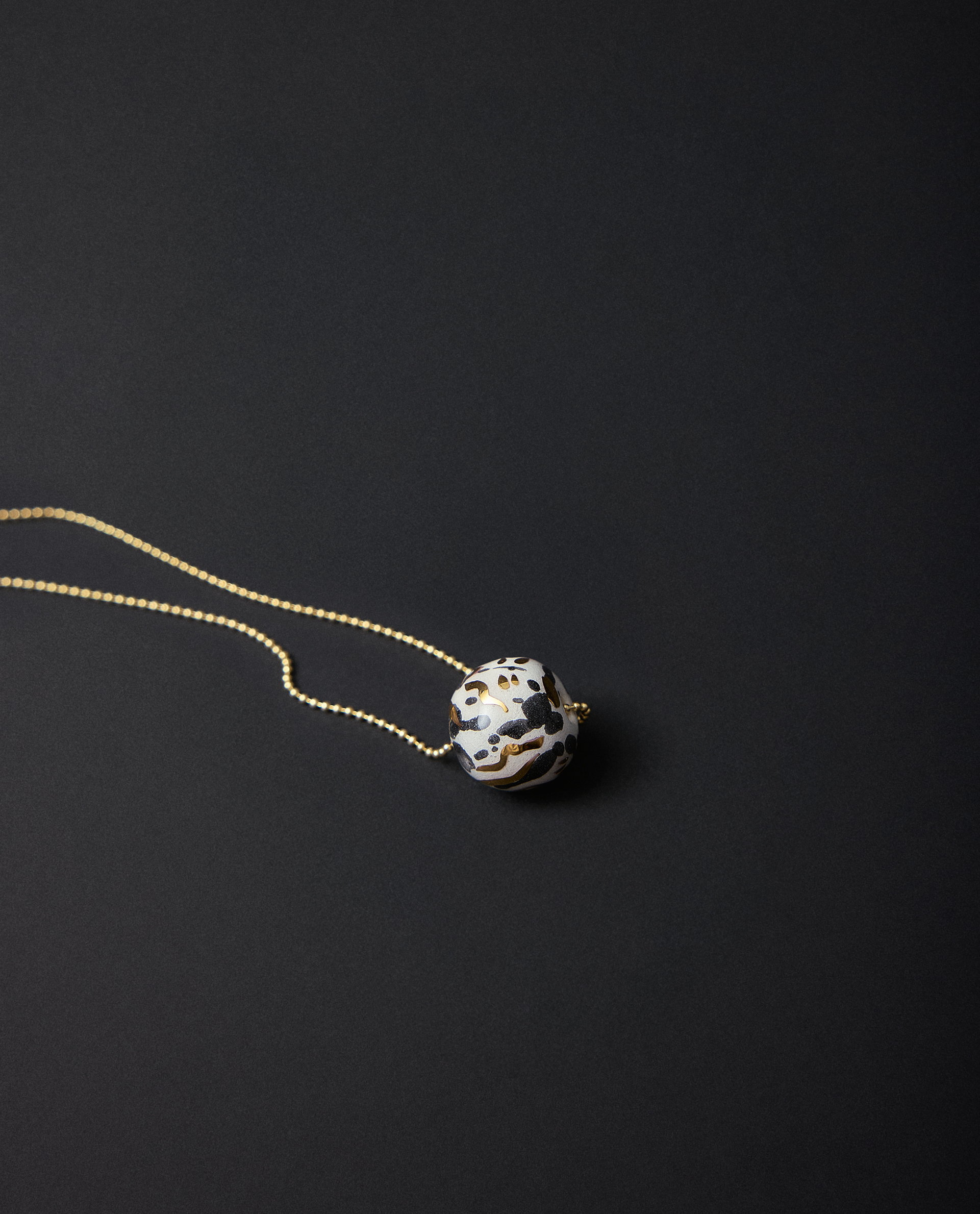 Collar realizado en cerámica blanca, lágrimas decoradas aleatoriamente con óxido negro y lustrados en oro. PIEZA ÚNICA.