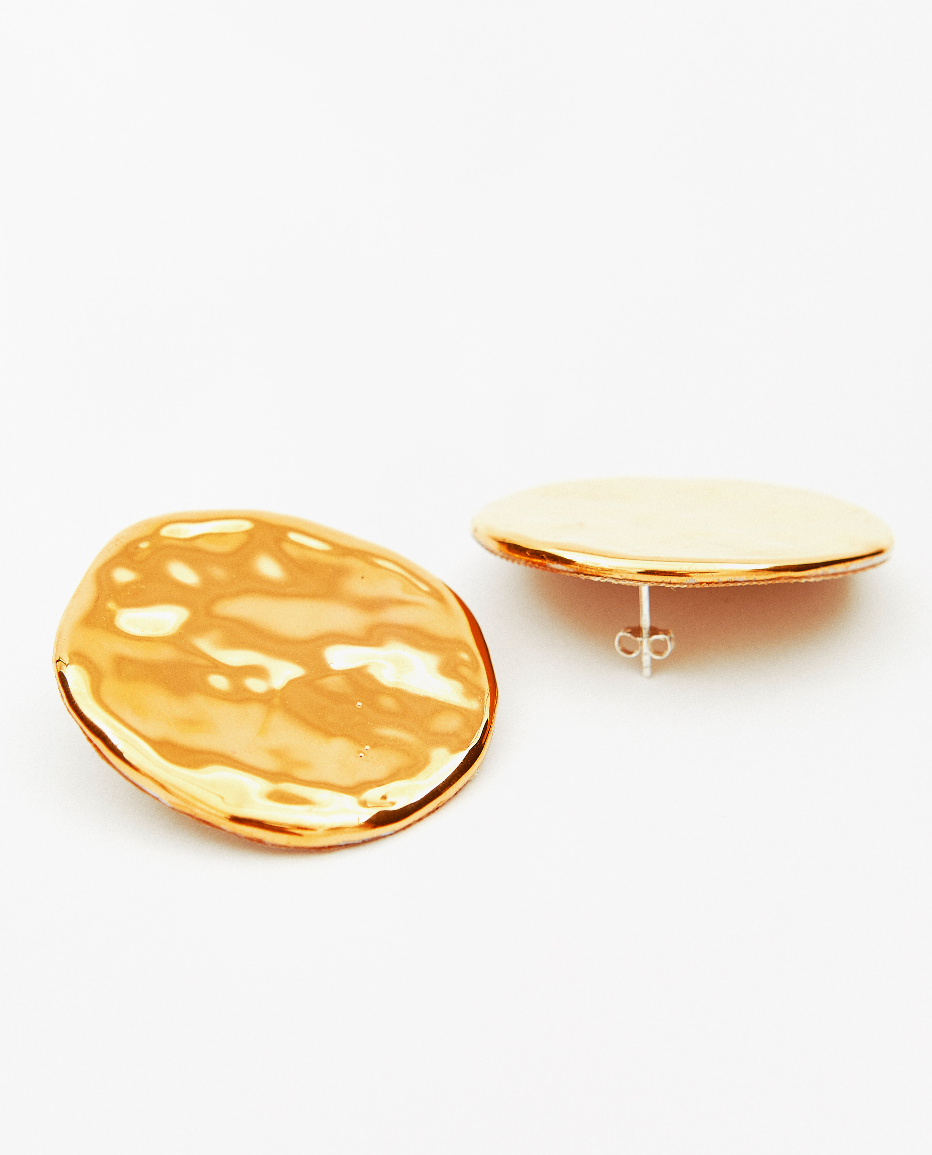 Pendientes maxi lustrados en oro montados sobre base de plata.