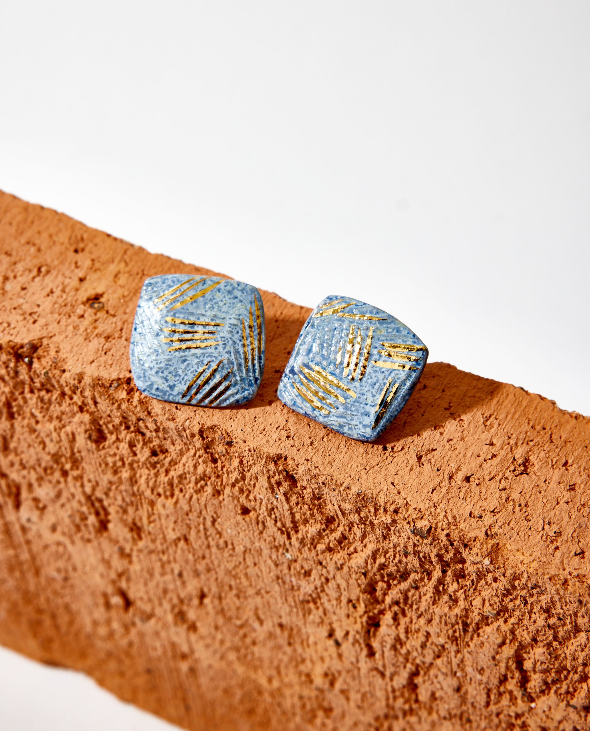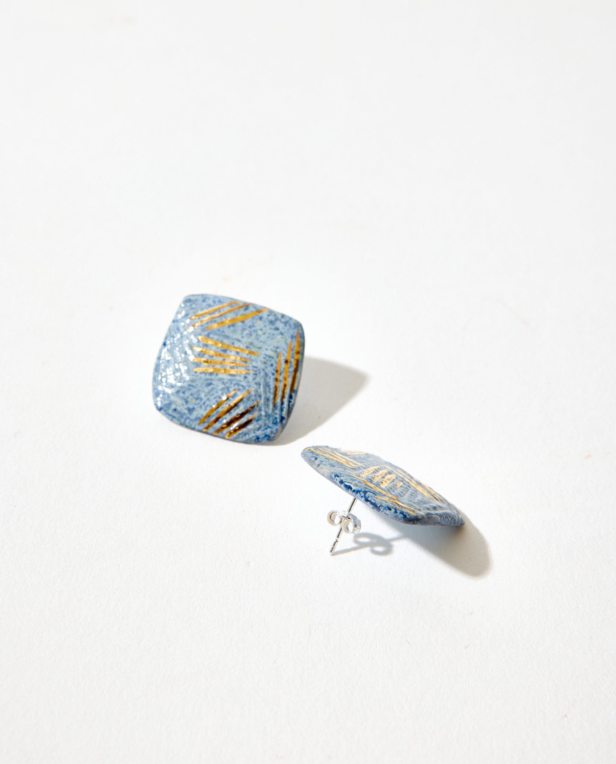 Pendientes de cerámica esmaltada en azul, diseño único por su forma orgánica y textura marina.