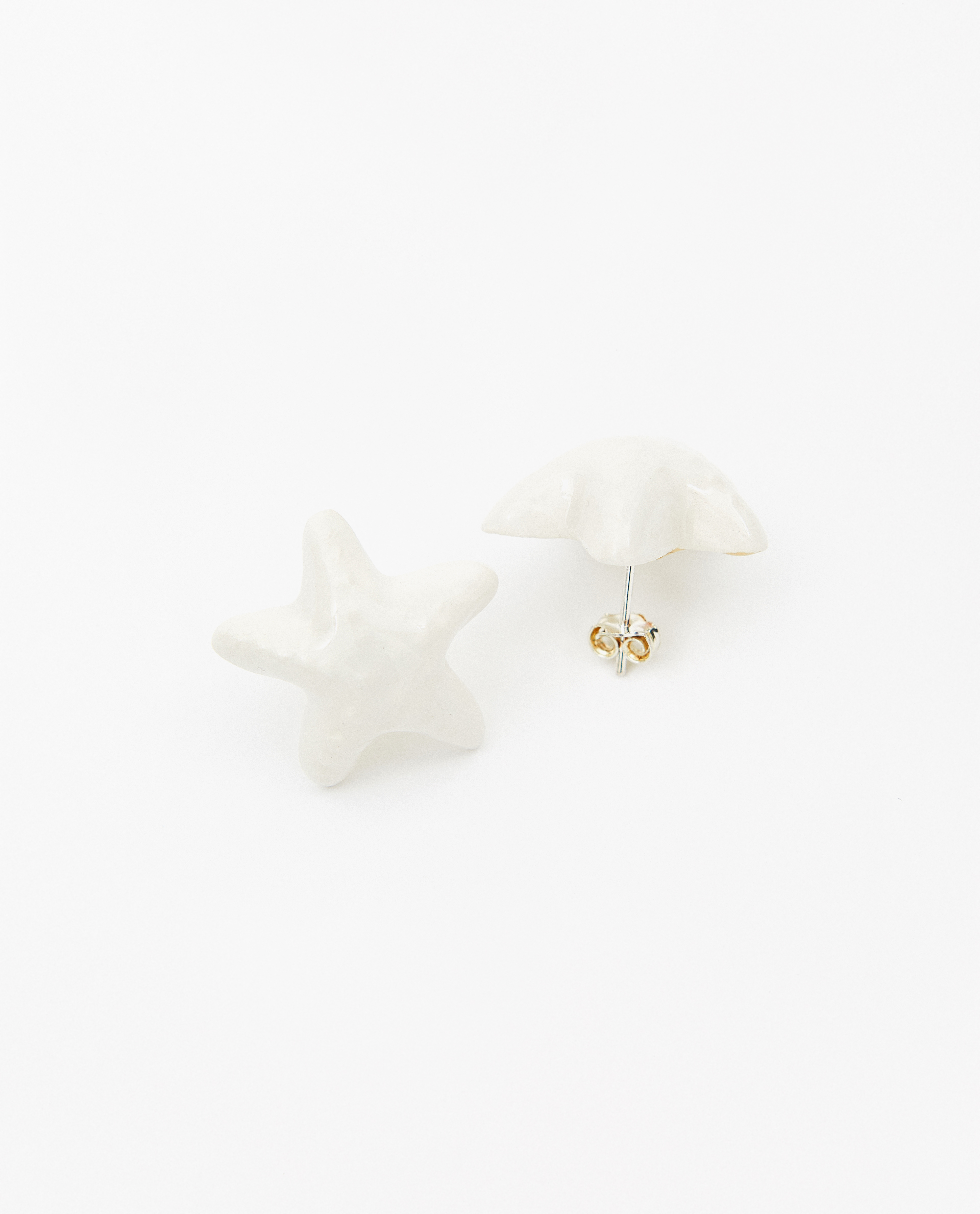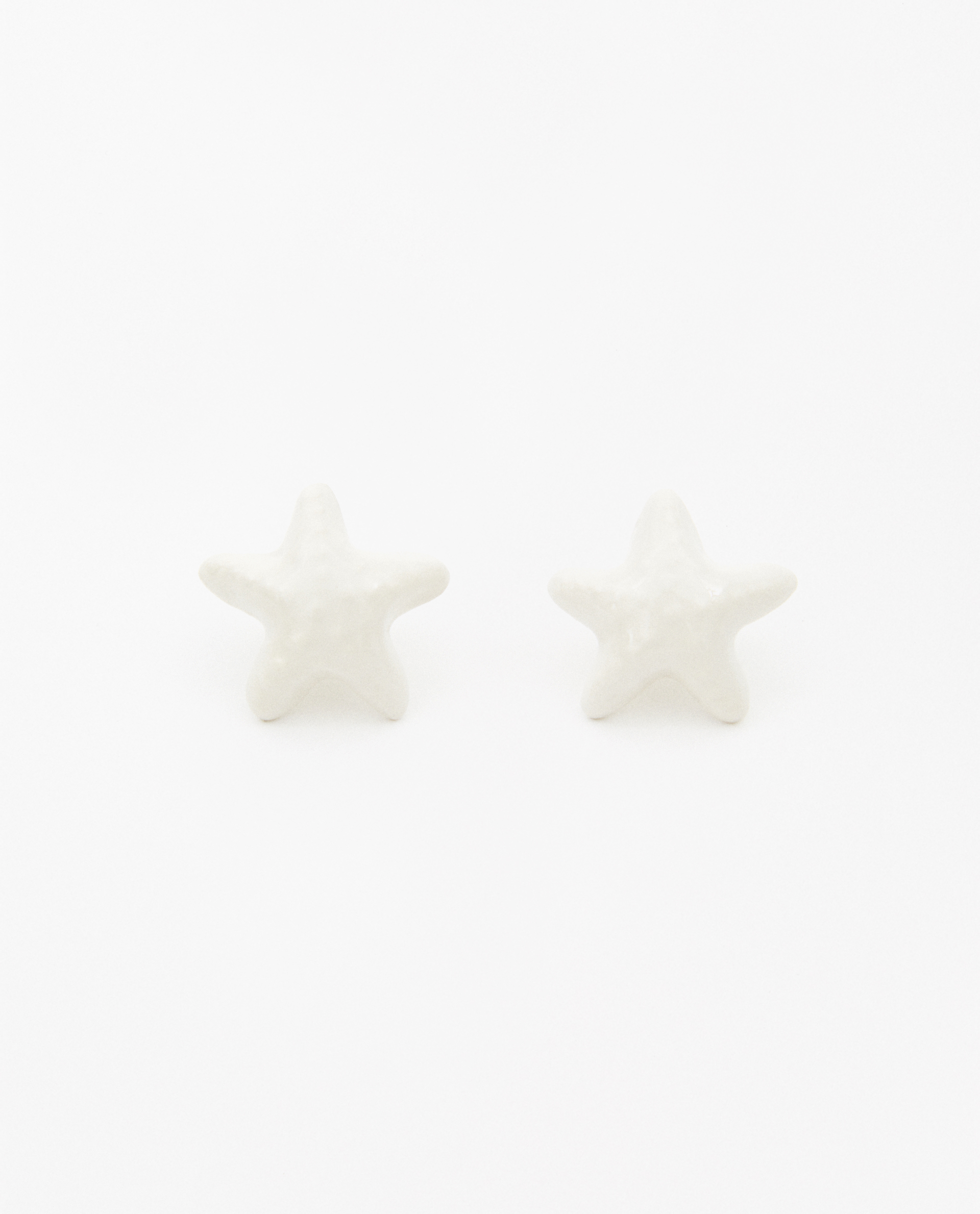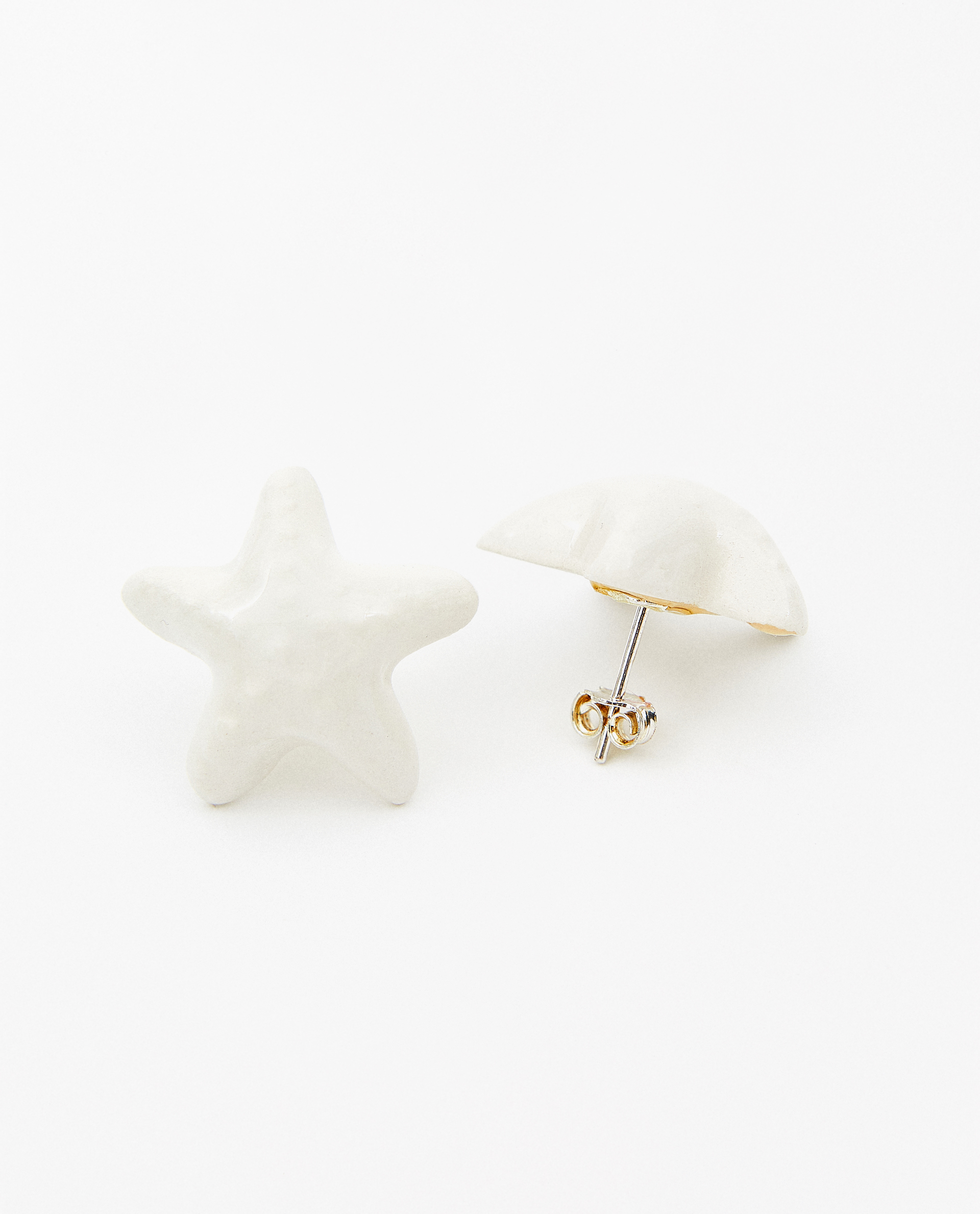 Pendientes estrella de mar esmaltada en brillo montados en base de plata.